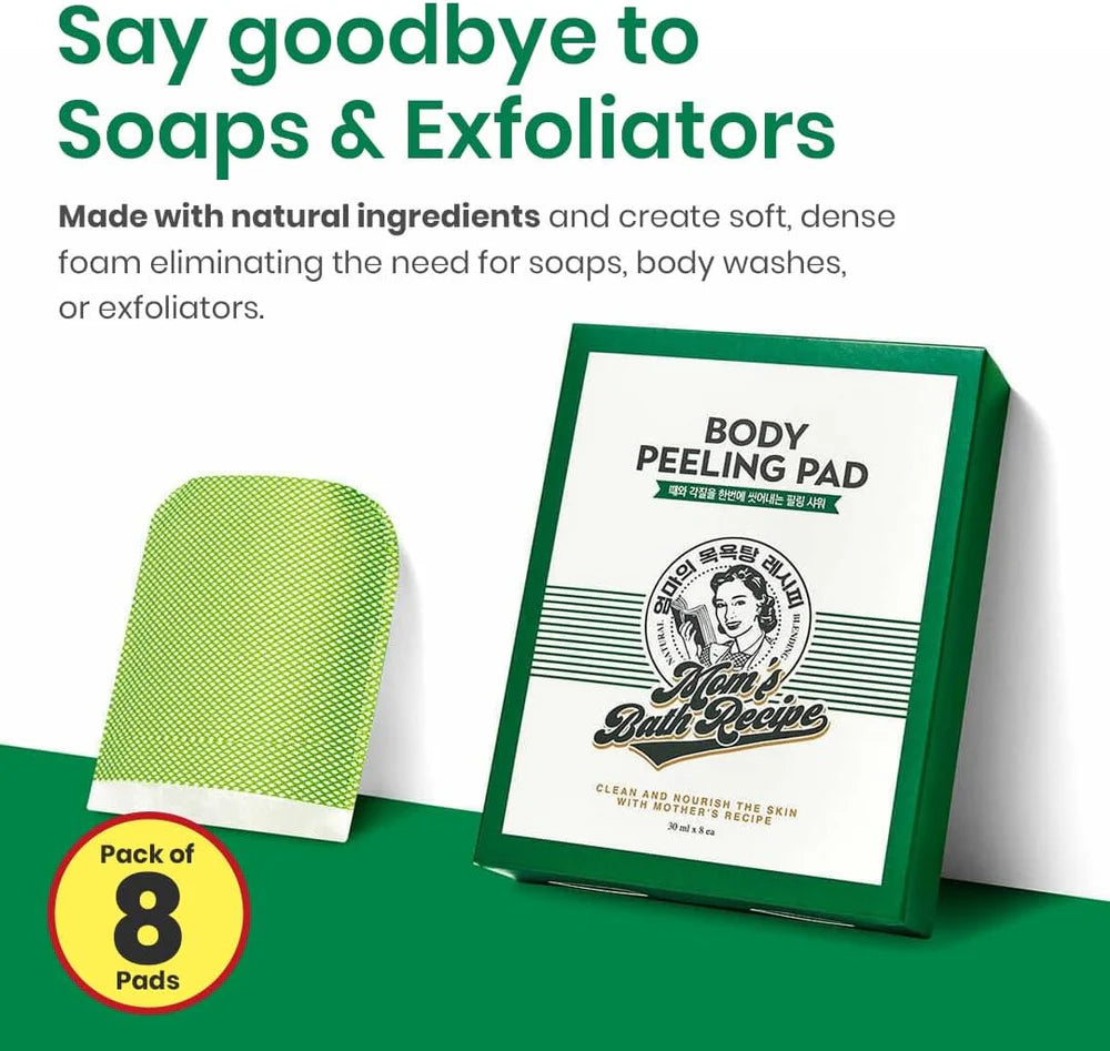 The Ultimate 3-in-1 Korean Body Spa at Home Experience the secret to "glass skin" for your body with the Mom’s Bath Recipe Body Peeling Pad. This globally viral, dual-sided peeling pad is designed to replace your traditional loofah and body scrub, offering a professional spa-like exfoliation and deep cleanse in one simple step. Infused with natural fermented ingredients, it melts away dead skin cells and impurities, leaving your skin incredibly soft, bright, and hydrated.
